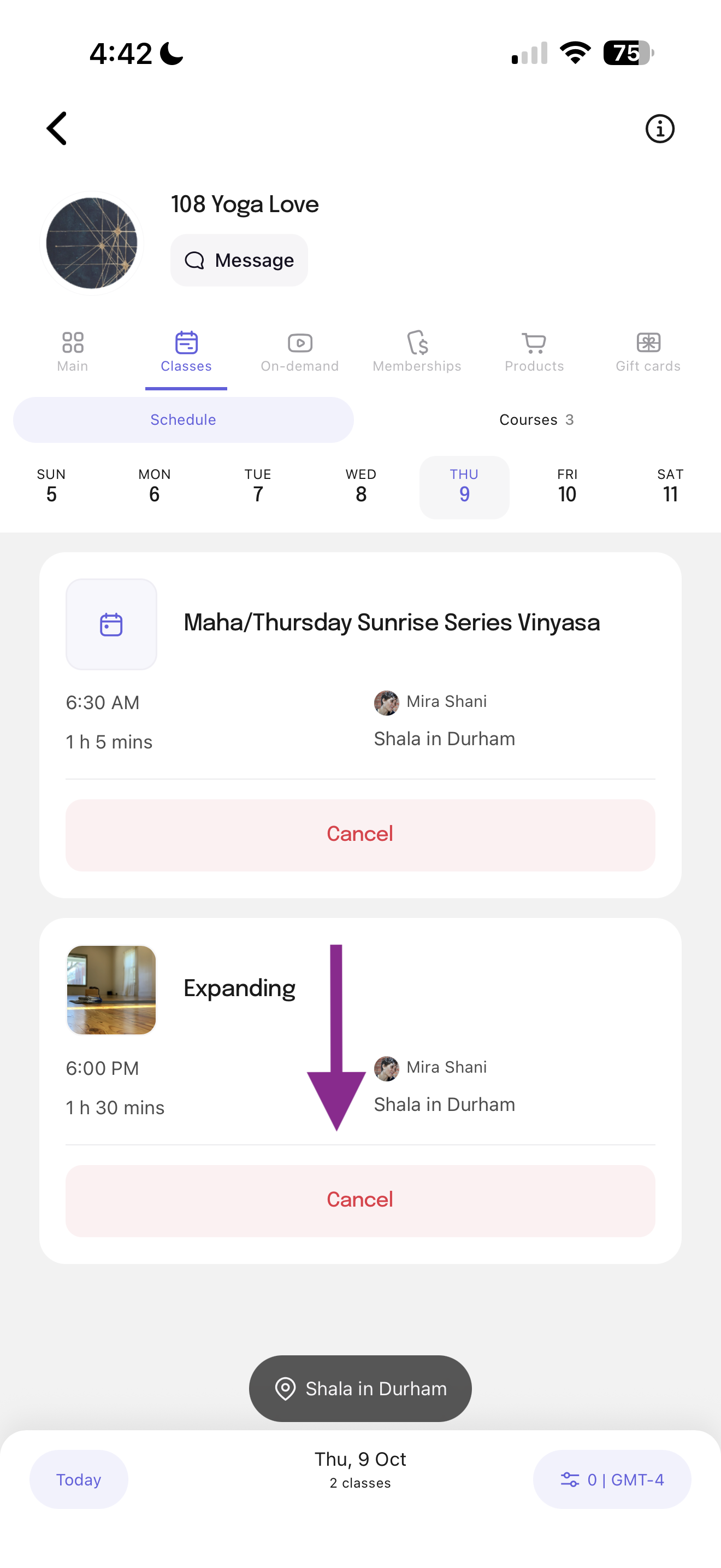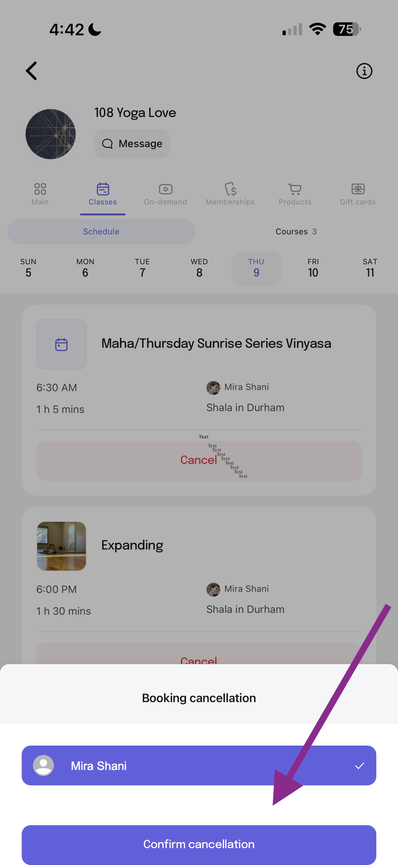 Step 2: Find the class you would like to cancel and click “Cancel”